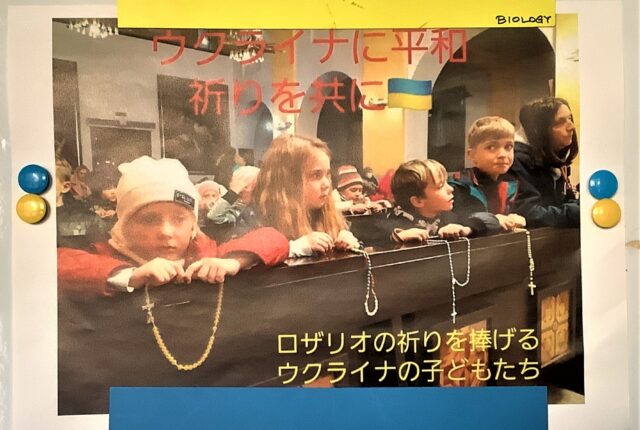 中3廊下の掲示板には長崎修学旅行のコーナーが設けてあります… 1か月後の春休み…実施できるでしょうか?? 今日のILは、前イエズス会日本管区長の梶山義…
