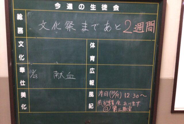 昨日で中間試験が終わり、次の大きなイベントは文化祭です。文化祭を中心となって動かす執行部(文化委員)の生徒たちは、忙しそうに動き回っています。 今日は…