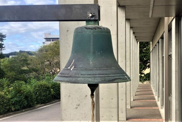 学校に鐘があるのを知っていますか? 一度もその音を聴かずに卒業する人もいるかもしれませんね。 別館の旧聖堂玄関の(階段の上にあった)ものを移設しました…