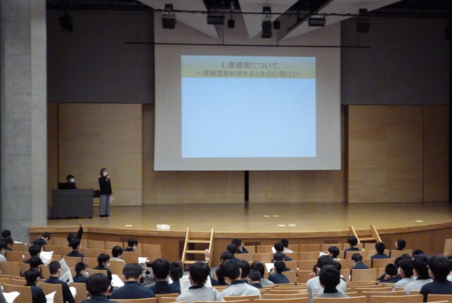 本日5限アルペ講堂にて、中1対象に保健室の使い方、保険についてのお話がありました。 保健室に行く際、どうしたらよいのか等の説明を受けていました。 みん…
