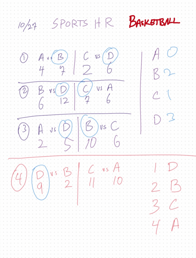 The Long Homeroom hour was spent playing various sports – softball / dodgeball / soccer / volleyball / basketball. Students wore their Sports Day t-shirts and competed against other classes.