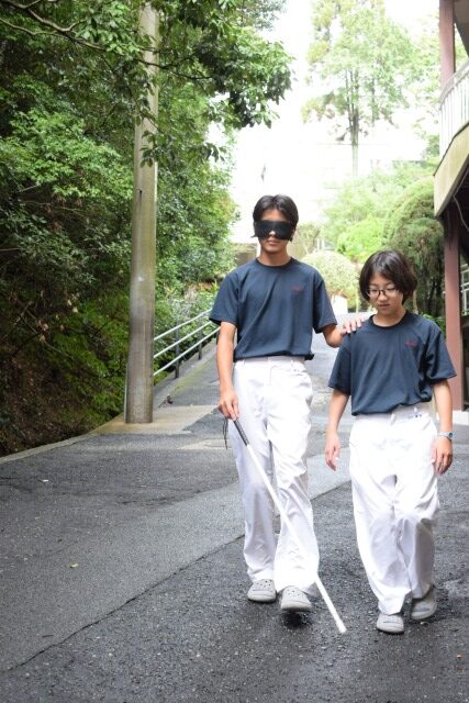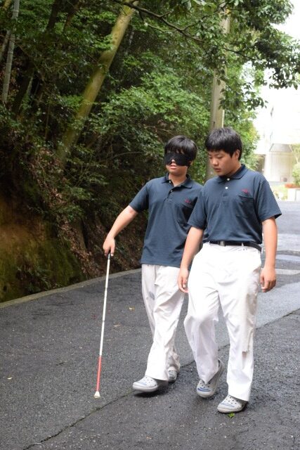 体育祭を挟んで少し前のことになりますが、中2はILの授業の中でアイマスク体験を実施しました。