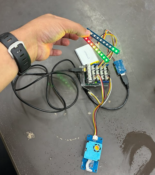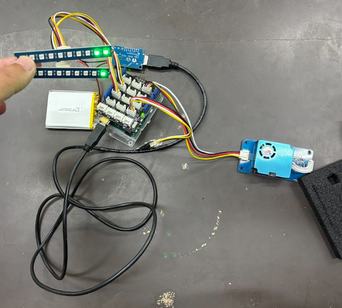 生徒達は、作業をしながら基盤の作りの細かさや、組み立てる際の精密さに驚いていました。また、基盤やCPUを作るための精密機械の話にもなり、精密機械を作るための精密機械も必要なのではという話で少し盛り上がりました。粒子センサーは、中にレーザー光が通っており、スパイ映画の宝物を守るシーンの様にレーザーの通路が邪魔されると微粒子が検知される仕組みだそうで、面白いなと思いました。
