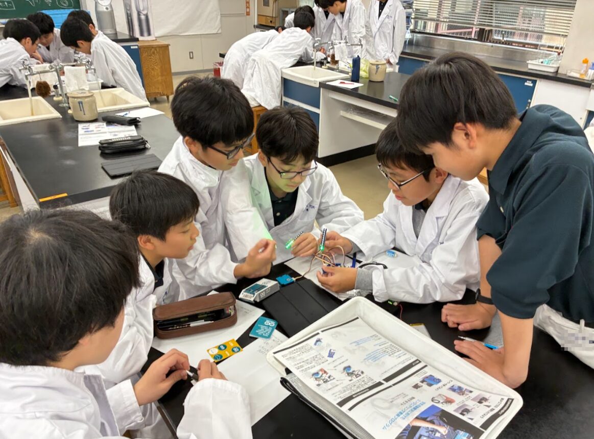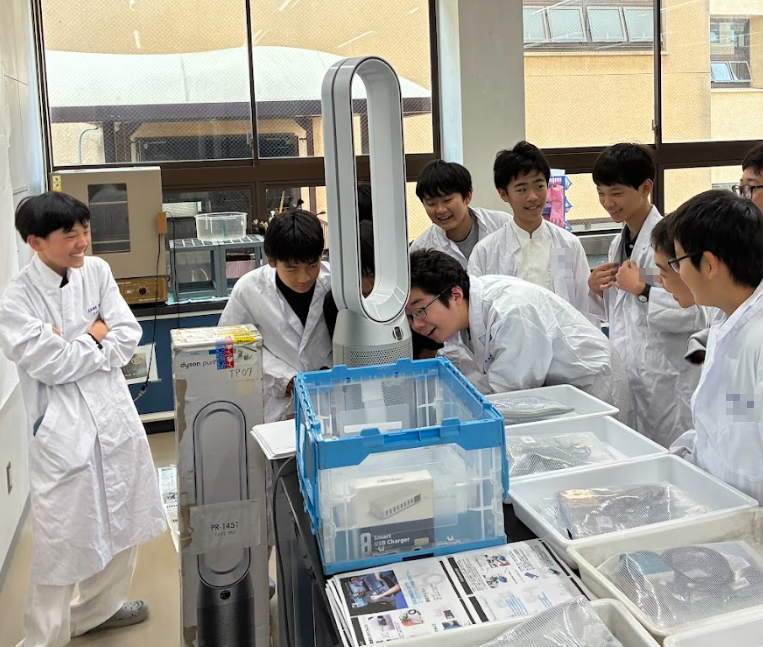 今回の実験は、機器を観察し、説明書を読んで組立てて作動させ、解体して片付ける流れで行いました。直接的に化学の話というわけにはいきませんでしたが、様々な科学技術を集結させて作られた工業製品を見る中で、その中に使われている化学の技術や物理の技術だけでなく、生物学との関連といったことにも気が付いてもらうこともできたかなと思います。また、良い製品を作ることを通じて社会を良くしていこうという思いや世界で起きている大気汚染に対する意識も、製品や教材資料から感じることができました。また、生徒達にはマイコンをうまく使うことで、ロボットのようなものが作れそうだということも感じてもらうことができ、総合的に良い授業になったと思いました。