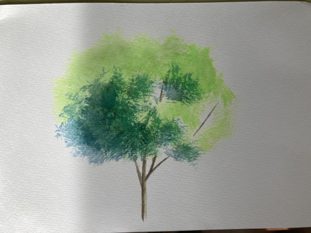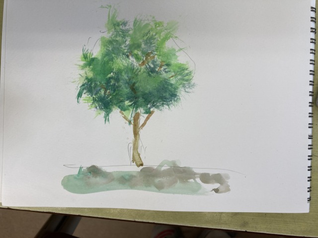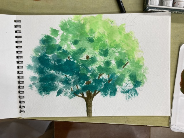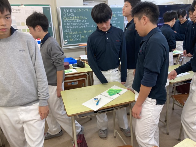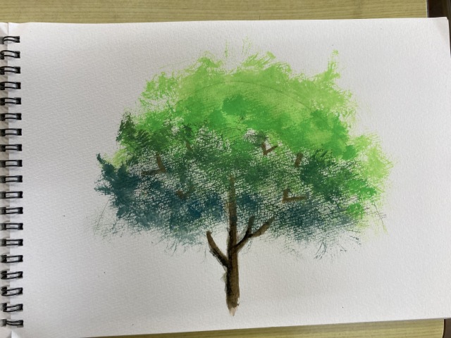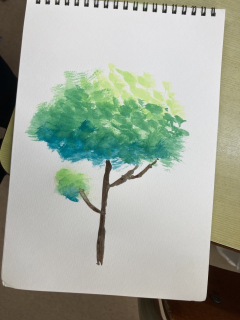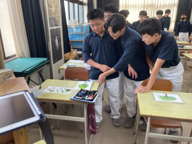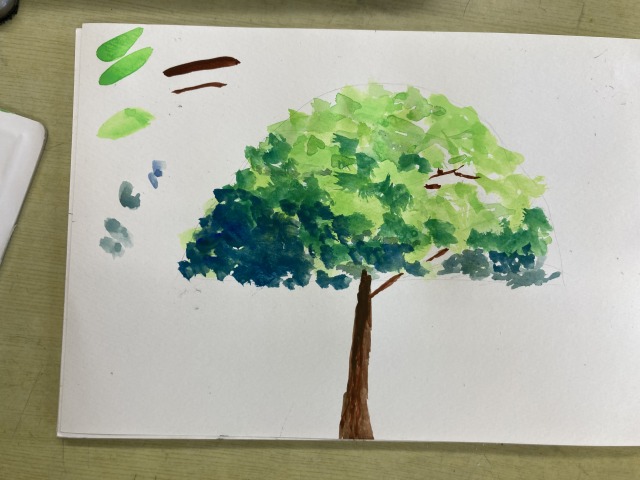 そんな苦手意識を克服するべく、水彩画の水加減や混色、筆づかいなどを身につけるために、今日の中3の授業では「木コンテスト」を開催しました。