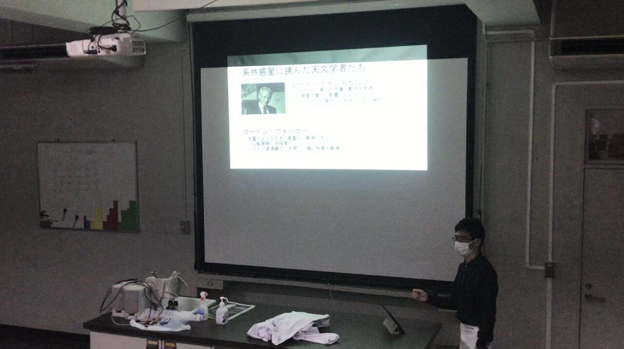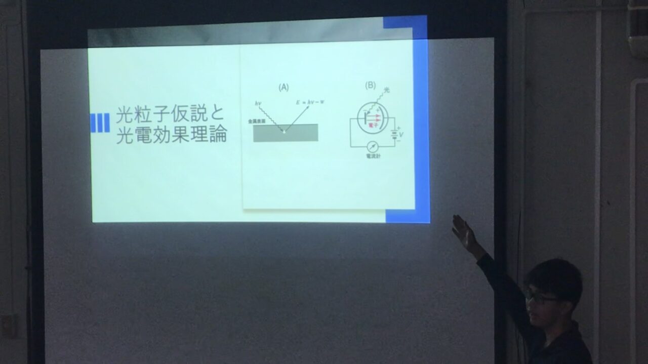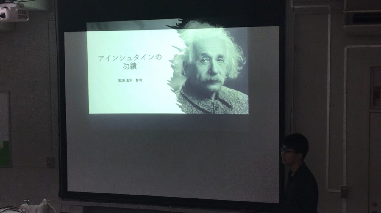 「科学史学」では生徒たちは自作のスライドをもとに,発表の練習中でした。