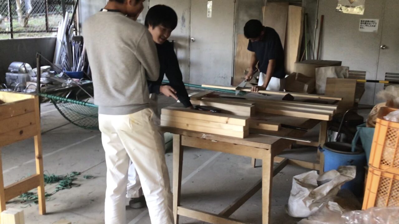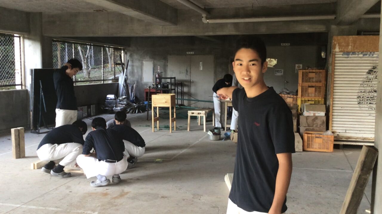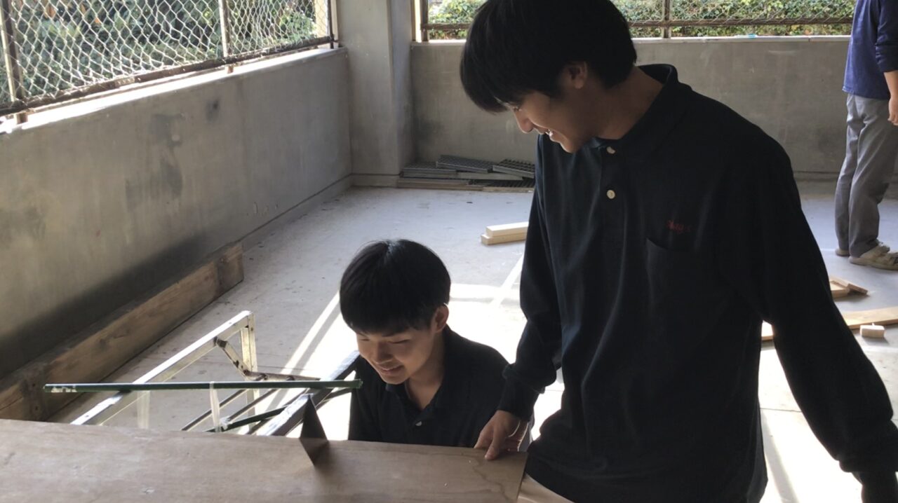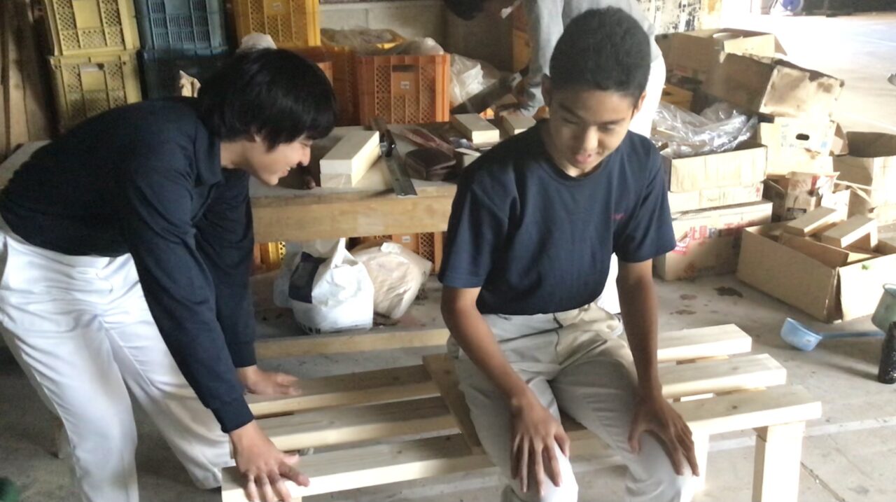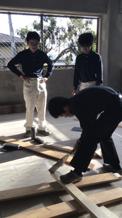 「測量と地図学&公園の開拓学」では工具を使って作成中!