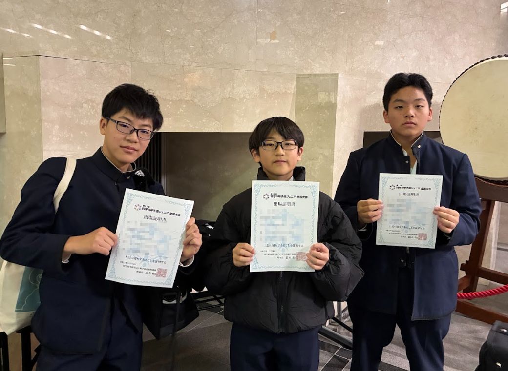 今回、大きな結果は残せませんでしたが、全力は出し切ることができたように思います。今回の様に全力で戦って、その上をいくチームがあること、自分1人だけの力の限界を感じられることが、この大会に参加することの大きな意義の一つかと思います。これからも全国大会1位は目指して行きますが、中学生大会で全力を出したうえで多少苦い経験ができた生徒達の今後の成長も楽しみに思っています。広島からの応援ありがとうございました。