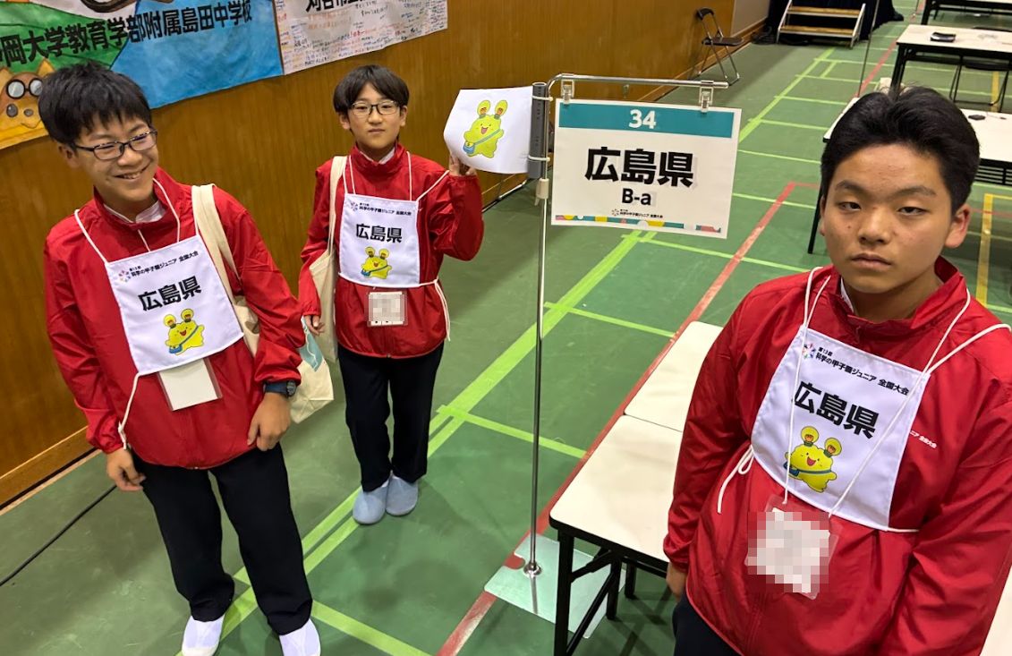 今回、大きな結果は残せませんでしたが、全力は出し切ることができたように思います。今回の様に全力で戦って、その上をいくチームがあること、自分1人だけの力の限界を感じられることが、この大会に参加することの大きな意義の一つかと思います。これからも全国大会1位は目指して行きますが、中学生大会で全力を出したうえで多少苦い経験ができた生徒達の今後の成長も楽しみに思っています。広島からの応援ありがとうございました。