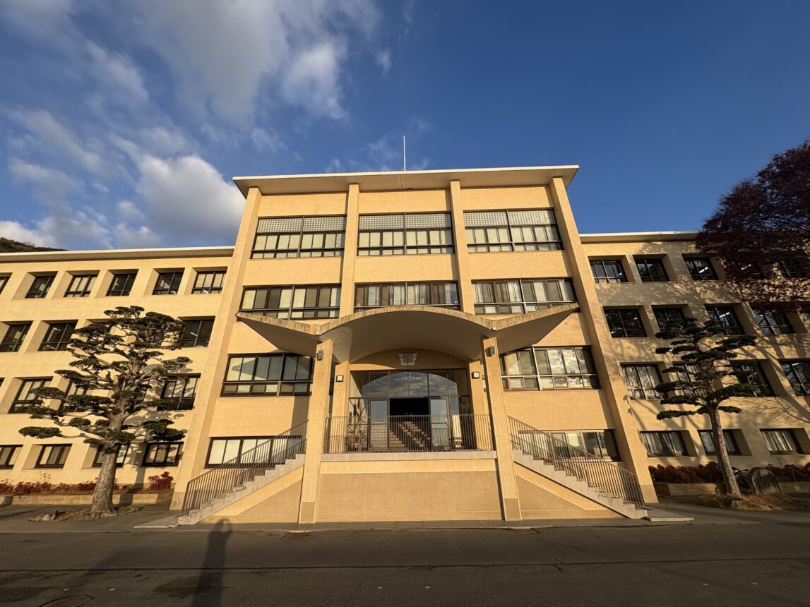 正面玄関から見られるこの朝の風景もそろそろ見納めに…寂しくなりますね。