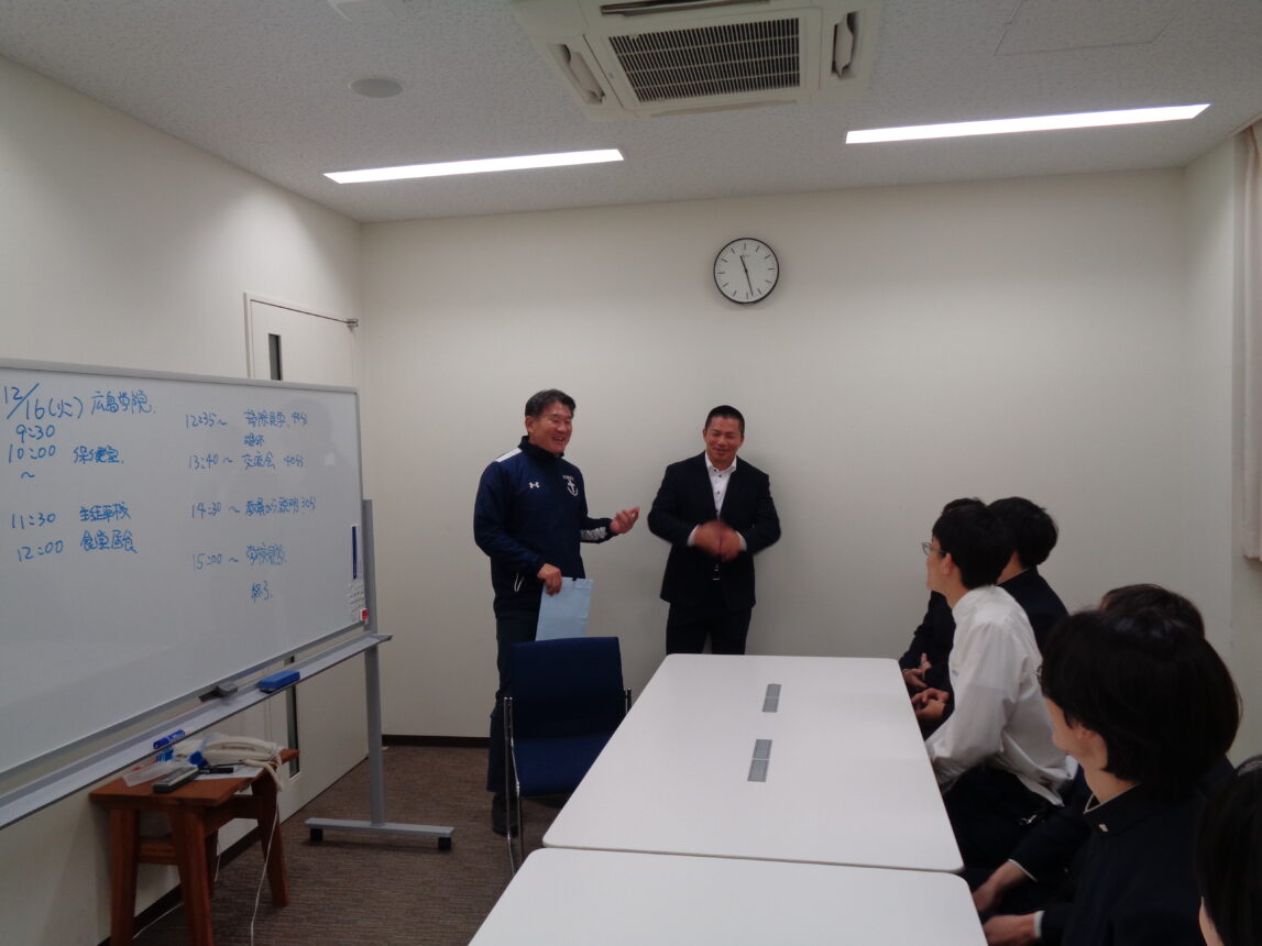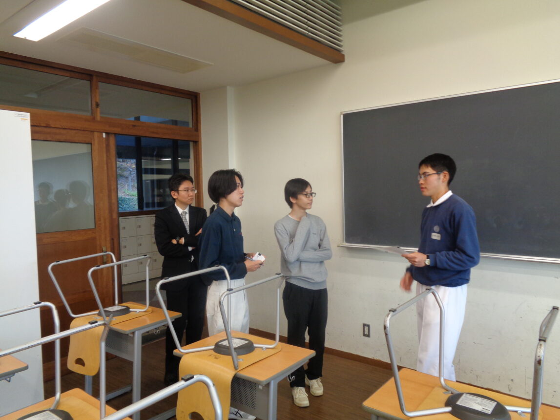見学が終わると全員で集まり、見学して感じたことや六甲学院と広島学院の違いなどを全員で共有しました。