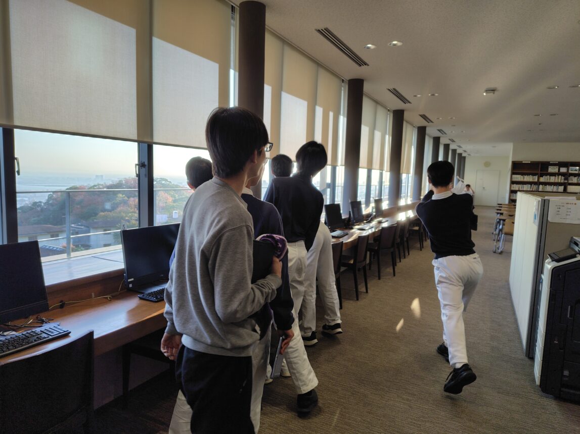 六甲学院での美化見学は放課後ということで、午前は神戸大学の見学に行きました。