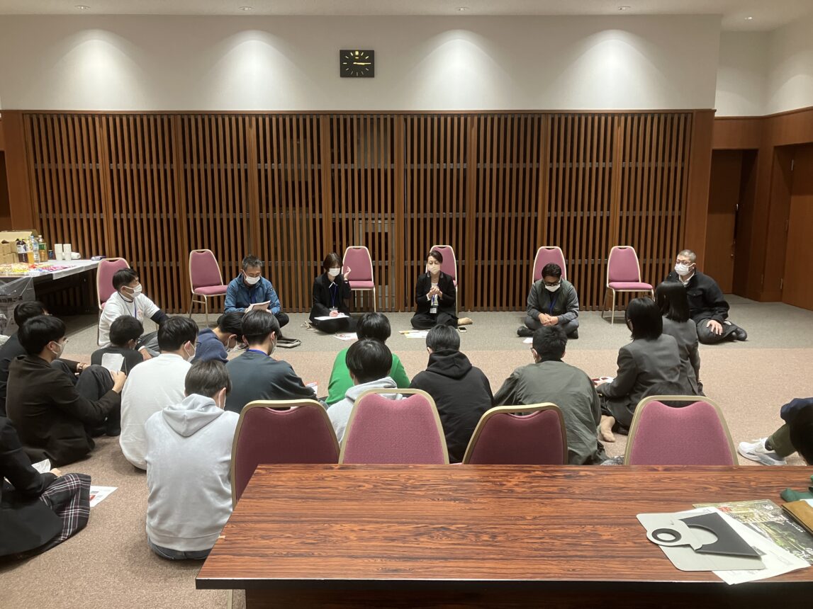 そのあと、グループに分かれ、話し合いです。初対面同士なのでまずは、自己紹介から。緊張からかなかなか話が進みません。