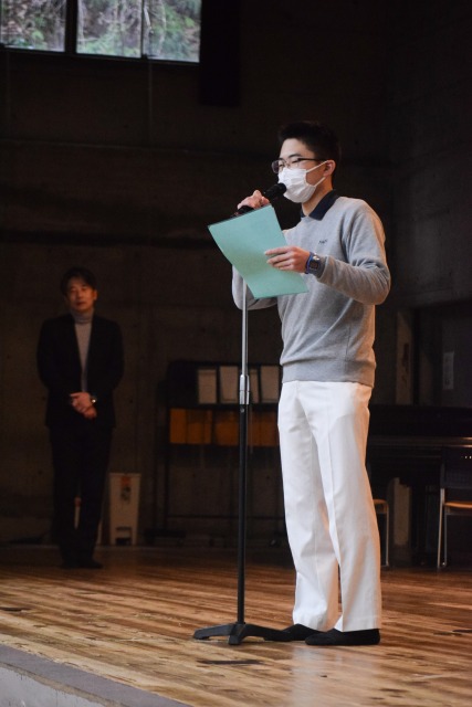 本日の全校朝礼は、高3の生徒から在校生へメッセージが送られました。