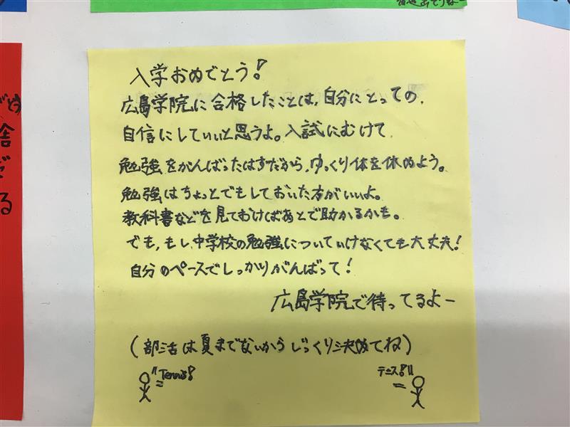 完成したメッセージは、新入生登校日や入学式の際に掲示する予定です。