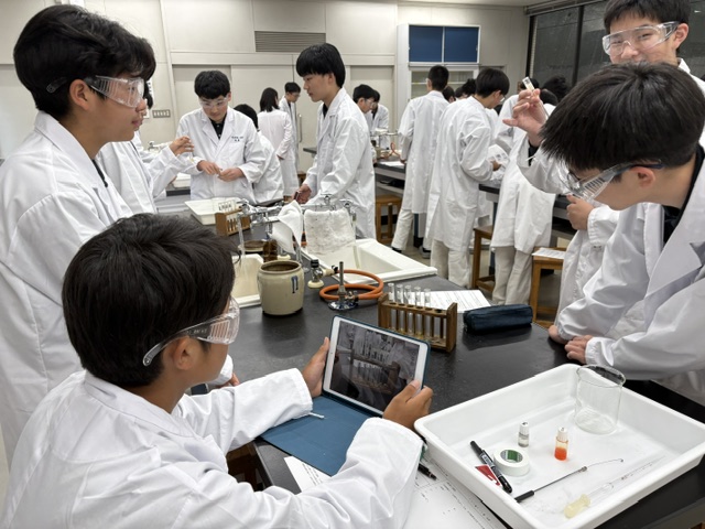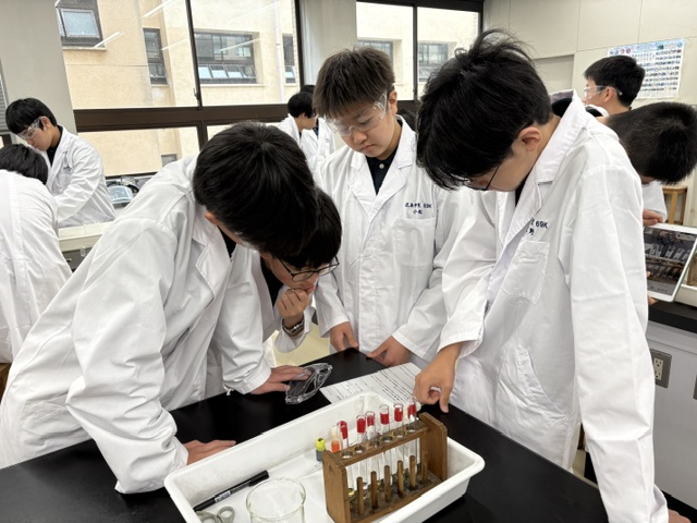 若干緊張した様子で授業に臨んでいる人が多いように見えましたが、実験が始まると全く心配をするような様子はなく、班のメンバーで話し合いをしながら積極的に授業に取り組むことができました。