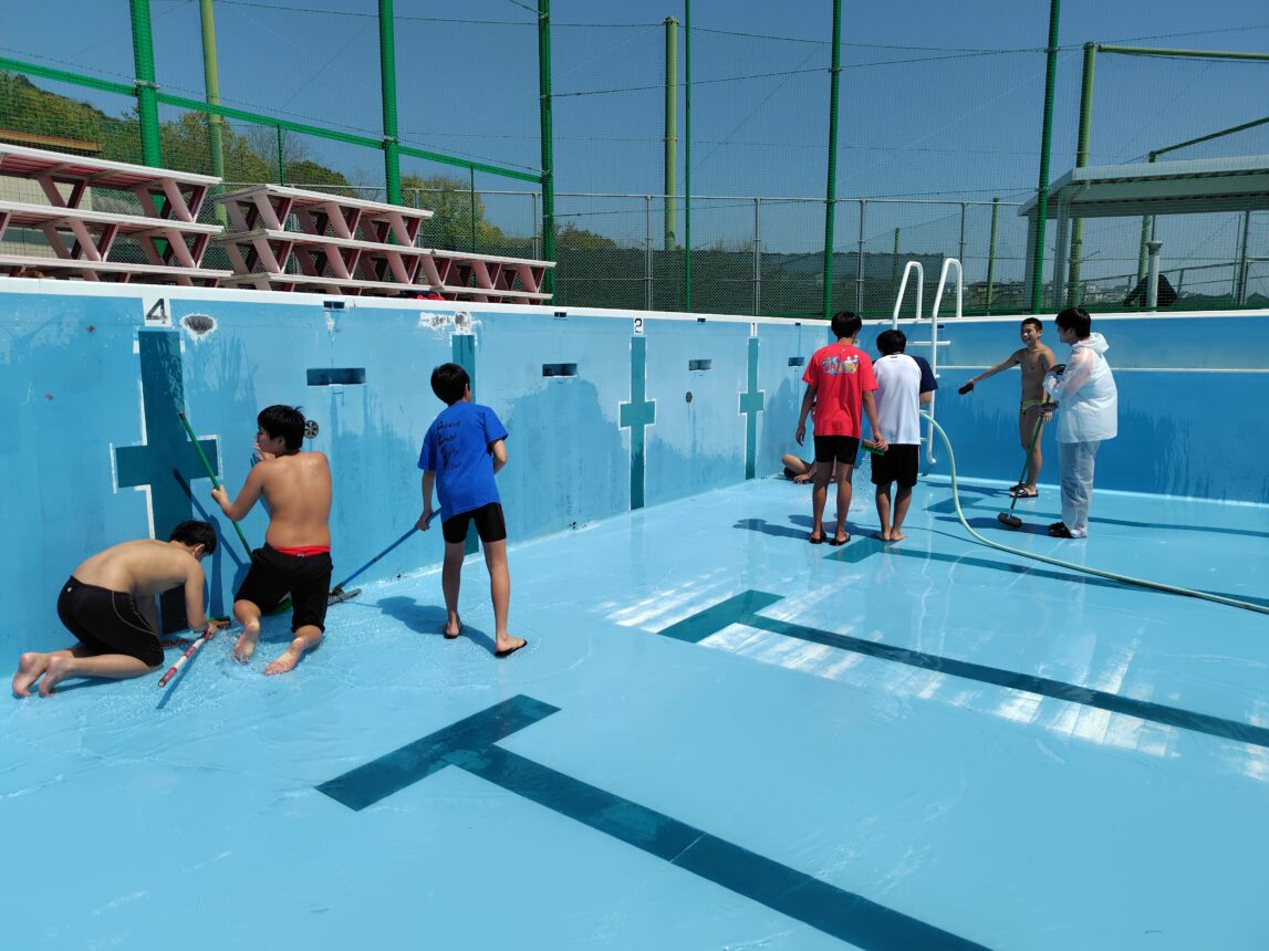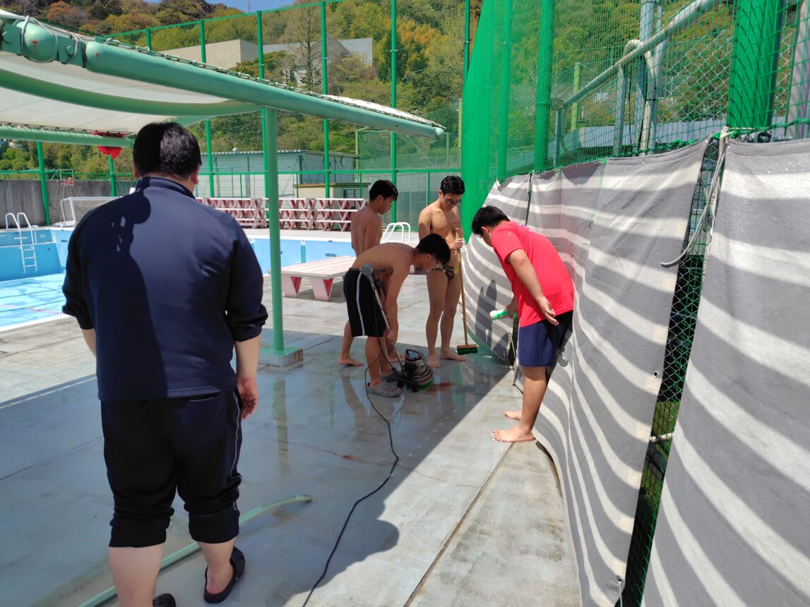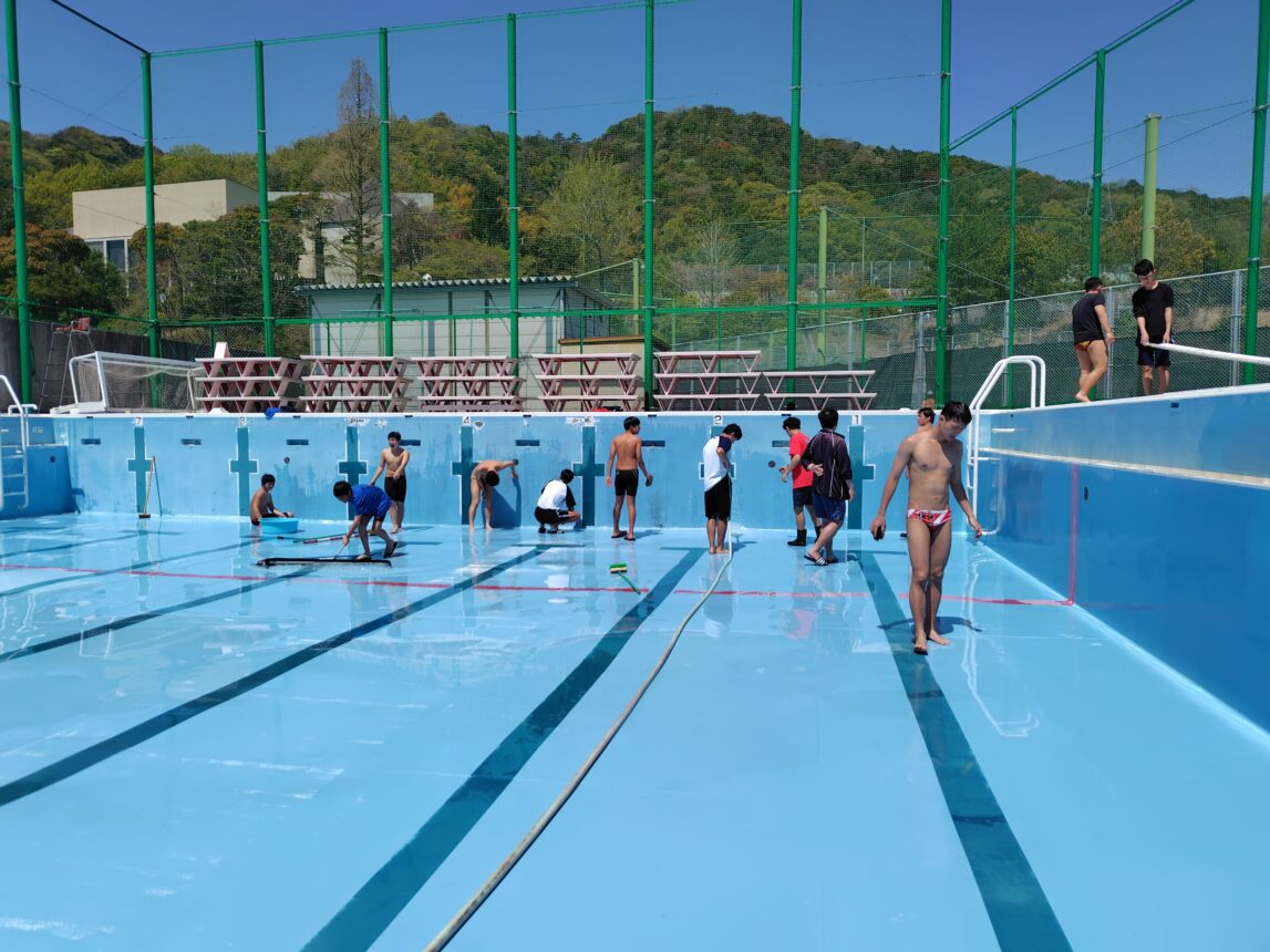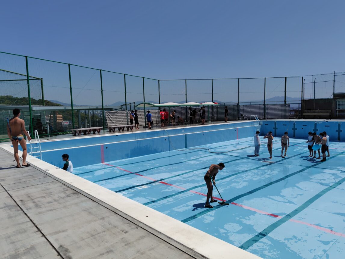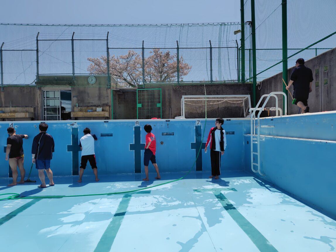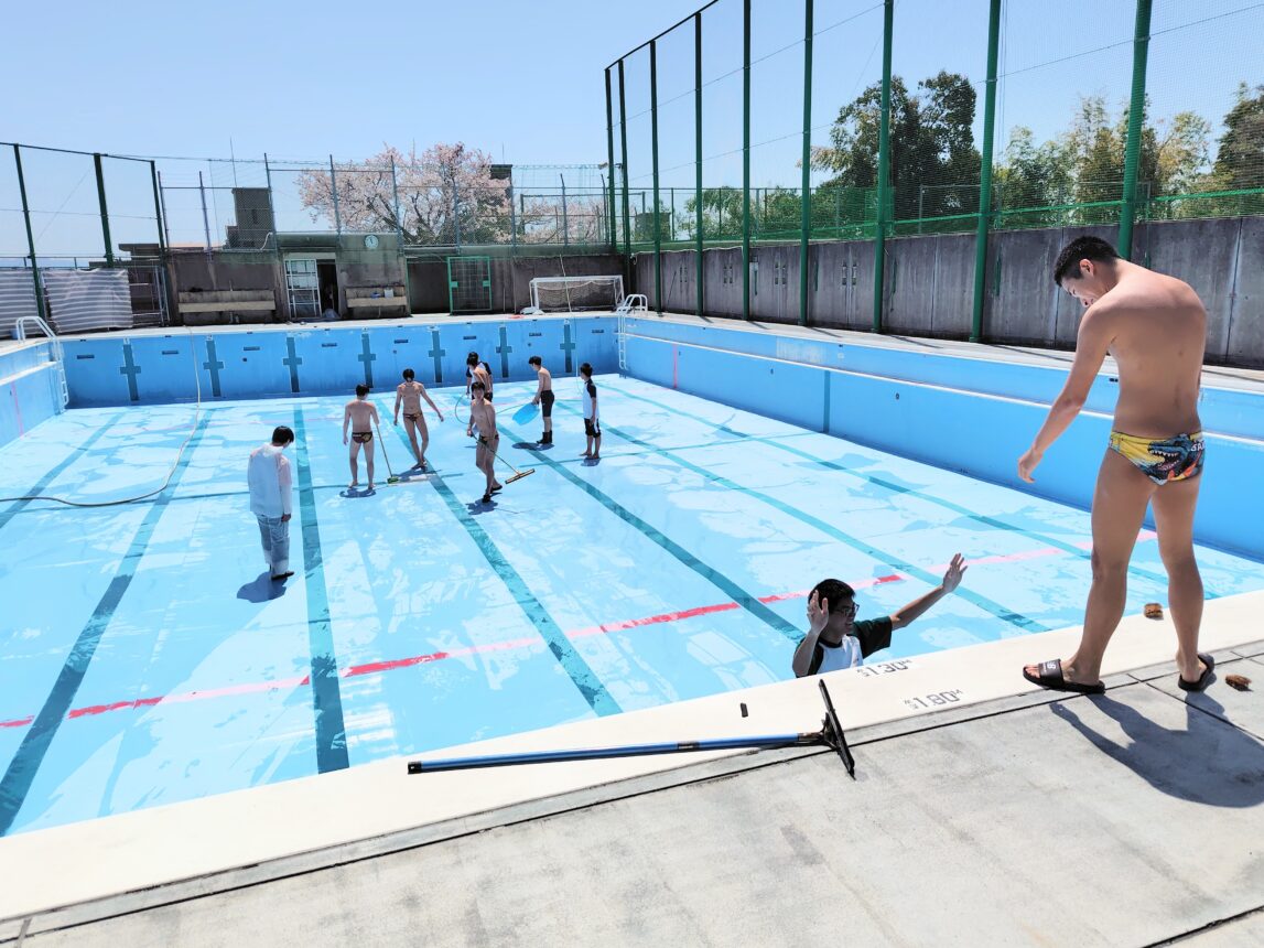 ということで先日は水泳部員によるプールの掃除と入水が行われました。