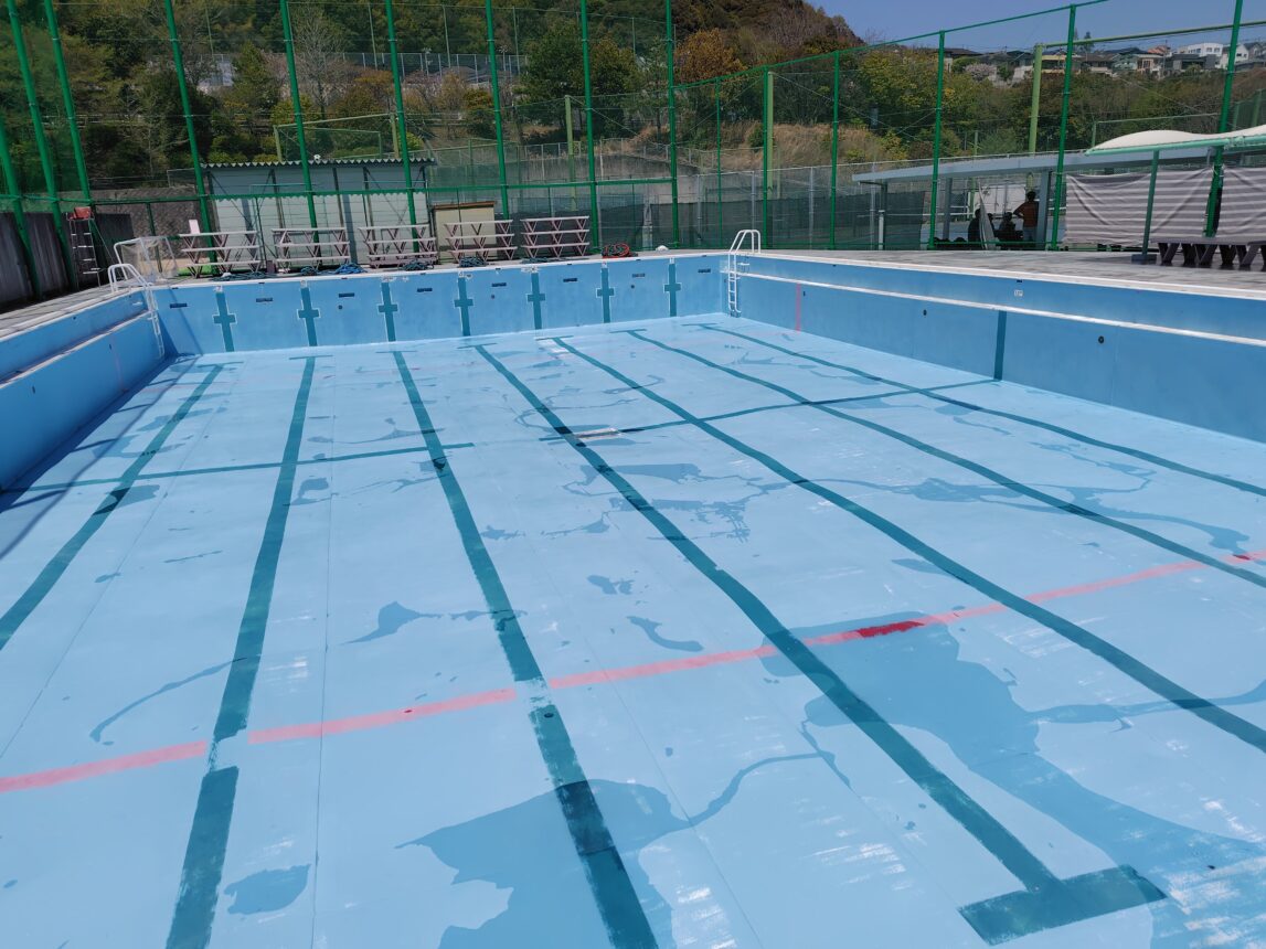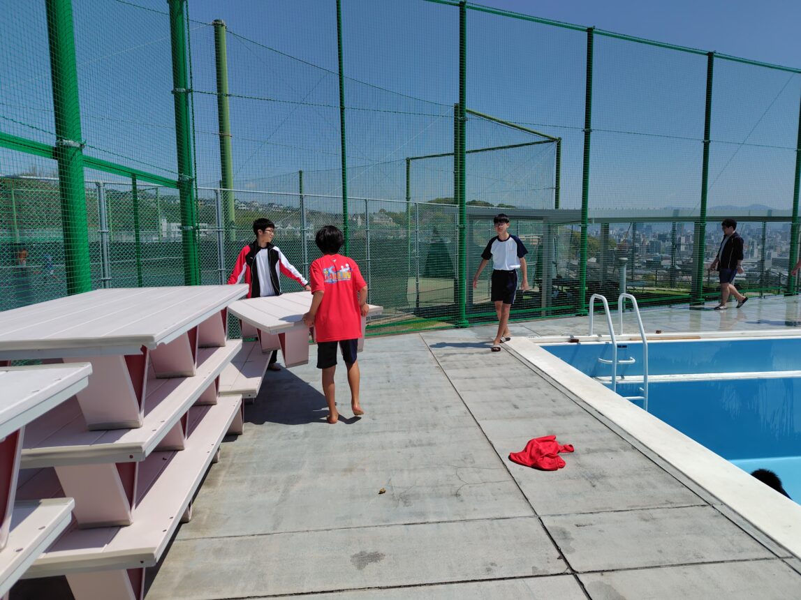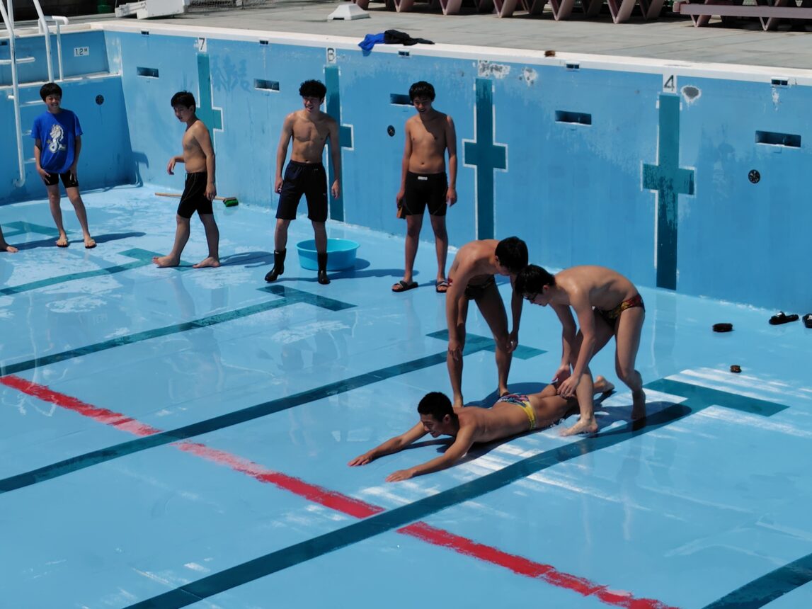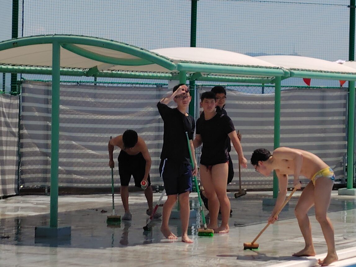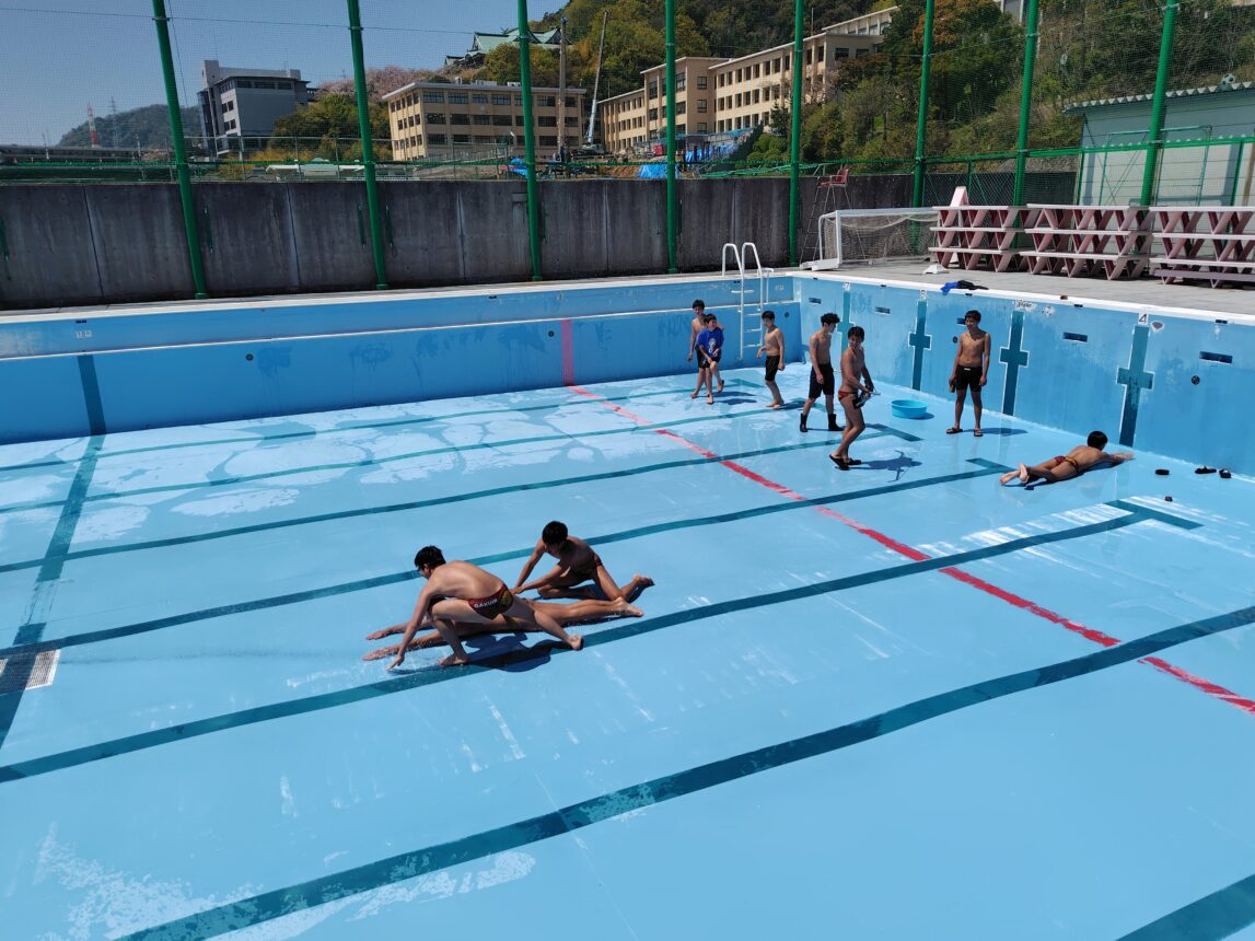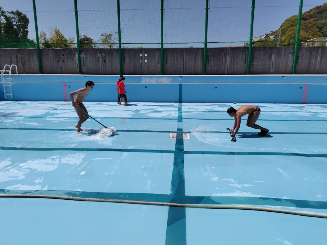 ということで先日は水泳部員によるプールの掃除と入水が行われました。